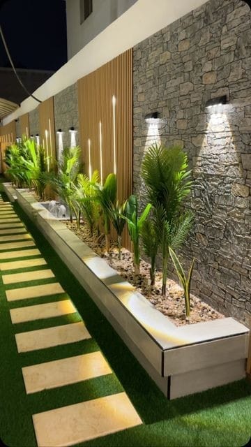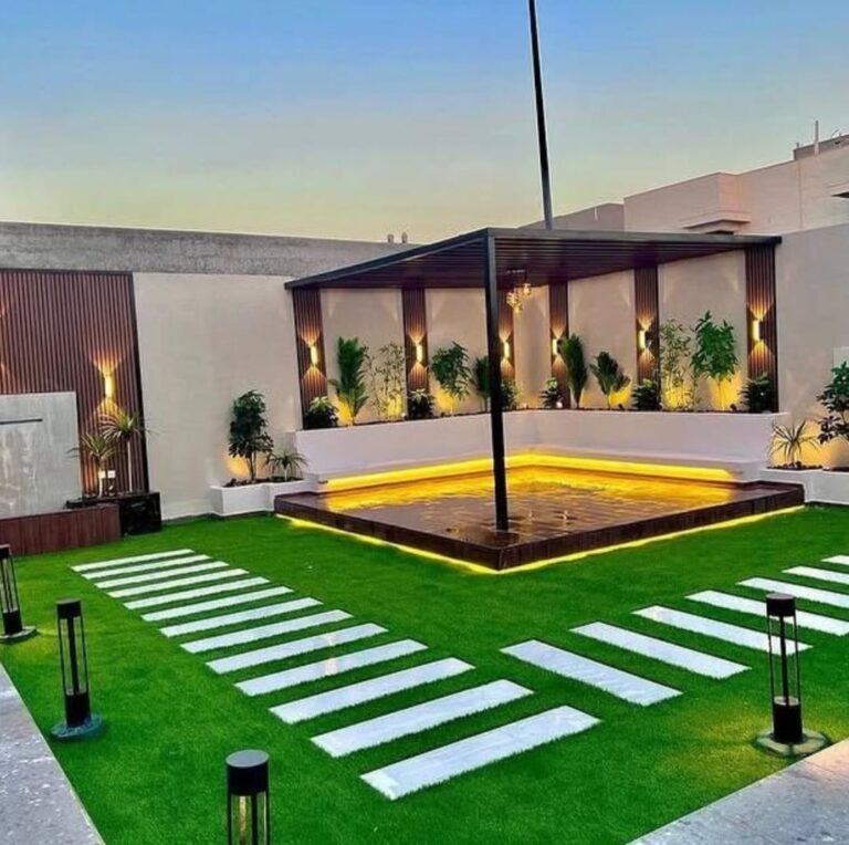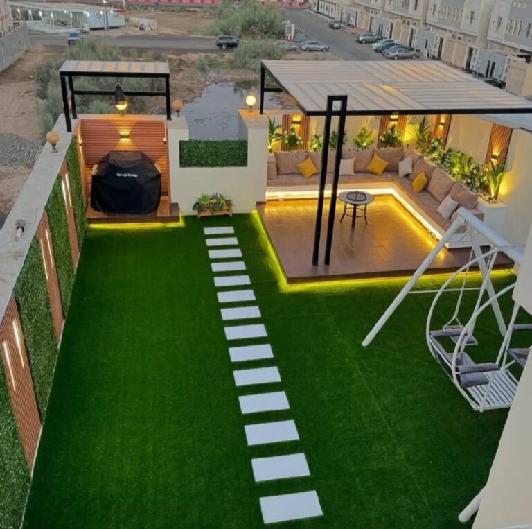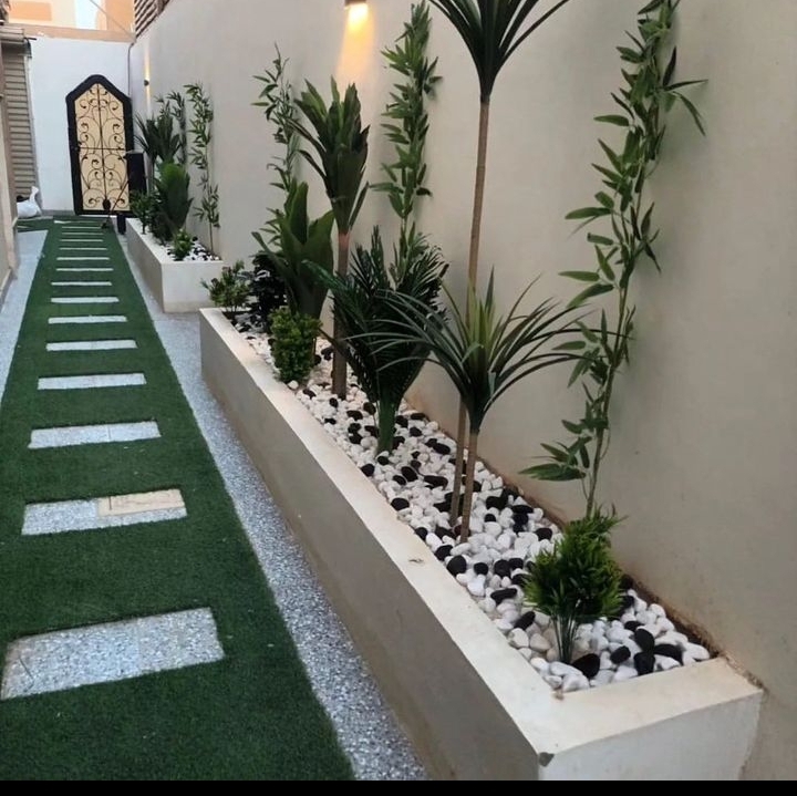 يعتبر تركيب العشب الصناعي من أكثر الحلول شيوعًا في تنسيق حدائق المنزلية بسبب قلة المياه. يصنع من مواد بلاستيكية متينة تشبه العشب الحقيقي